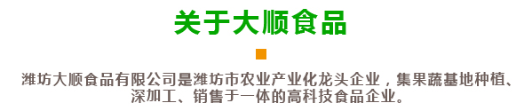 濰坊大順食品有限公司創(chuàng)建于2006年10月,位于中國(guó)出口蔬菜基地安丘市。地位置優(yōu)越,距離青島港100公里,是濰坊市農(nóng)業(yè)產(chǎn)業(yè)化龍頭企業(yè),2022年被授予國(guó)家級(jí)高新技術(shù)企業(yè),2024年被授予省“專(zhuān)精特新中小企業(yè)”。公司通過(guò)了歐盟BRC質(zhì)量體系認(rèn)證,ISO9000認(rèn)證,清真HALAL認(rèn)證。公司占地面積26680㎡,員工190人,主要制造、銷(xiāo)售VF果蔬脆片、FD凍干果蔬、香菇素牛肉、黑蒜等產(chǎn)品,年產(chǎn)能6000噸,創(chuàng)匯1000萬(wàn)美元!